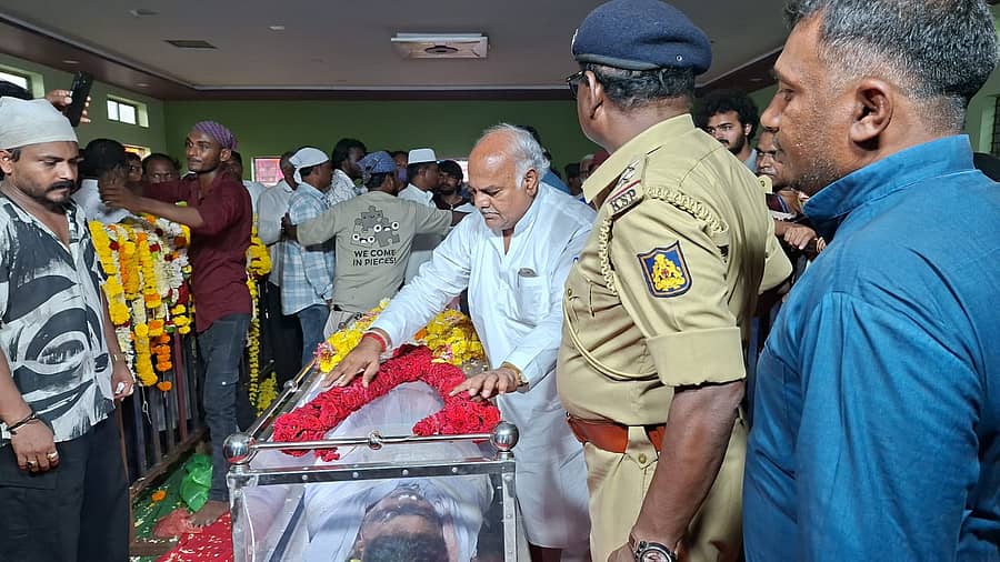 ರಾಜು ತಾಳಿಕೋಟೆ ಅವರ ಪಾರ್ಥಿವ ಶರೀರಕ್ಕೆ ಸಚಿವ ಶಿವಾನಂದ ಪಾಟೀಲ ಸೇರಿದಂತೆ ನೂರಾರು ಅಭಿಮಾನಿಗಳು, ಸ್ನೇಹಿತರು, ಕುಟುಂಬ ವರ್ಗದವರು ಅಂತಿಮ ಗೌರವ ಸಲ್ಲಿಸಿದರು.