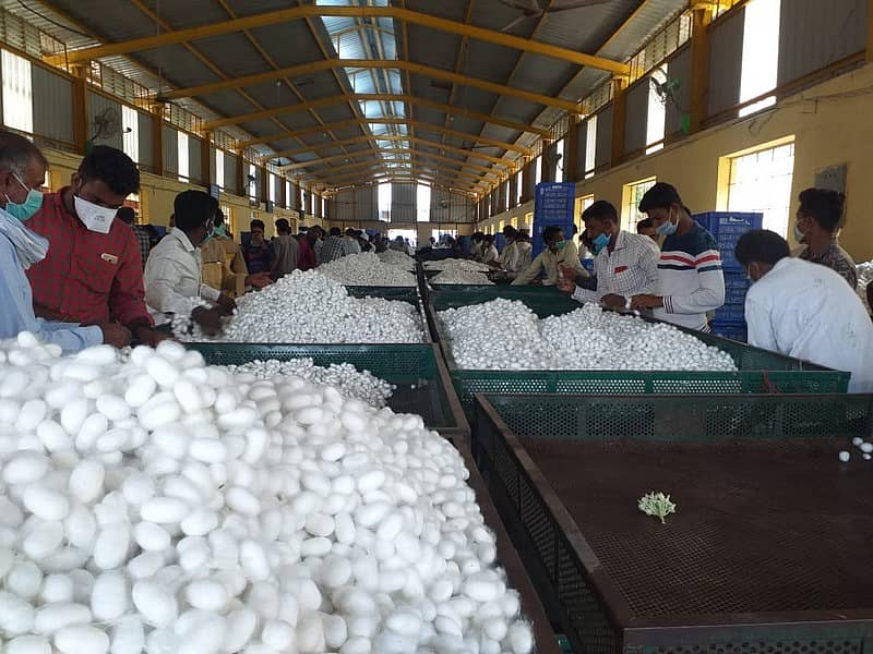 ರಾಜ್ಯದ ವಿವಿಧ ಜಿಲ್ಲೆಗಳ ಜೊತೆಗೆ ಹೊರ ರಾಜ್ಯಗಳಿಂದಲೂ ರೈತರು ಗೂಡು ತಂದಿದ್ದಾರೆ. ಬೆಳಗ್ಗೆ ನಡೆದ ಹರಾಜು ಪ್ರಕ್ರಿಯೆಯಲ್ಲಿ ಸಾವಿರ ಮಂದಿ ಪಾಲ್ಗೊಂಡರು. ಆದರೆ ಸಾಮಾಜಿಕ ಅಂತರ ಎಂಬುದು ಮರೀಚಿಕೆಯಾಗಿದ್ದು, ಜನರು ಕಿಕ್ಕಿರಿದು ನೆರೆದಿದ್ದಾರೆ.