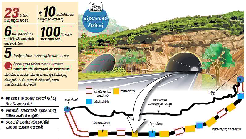 * ಶಿರಾಡಿ ಘಾಟಿ ಸುರಂಗ ಮಾರ್ಗ ನಿರ್ಮಾಣ ಬಹುದಿನದ ಬೇಡಿಕೆಯಾಗಿದೆ. ಈ ವರ್ಷ ಸುರಿದ ಮಳೆಯಿಂದ ಸುರಂಗ ಮಾರ್ಗದ ಅವಶ್ಯಕತೆ ಮತ್ತಷ್ಟು ಹೆಚ್ಚಾಗಿದೆ.