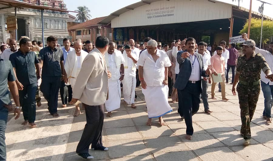 ಶೃಂಗೇರಿ: ‘ತುಮಕೂರಿನ ಸಿದ್ಧಗಂಗಾ ಮಠದ ಡಾ.ಶಿವಕುಮಾರ ಸ್ವಾಮೀಜಿಯ ಆರೋಗ್ಯದಲ್ಲಿ ಸಣ್ಣಪುಟ್ಟ ಏರುಪೇರಾಗಿದೆ. ಗುರುವಾರ ಹಲವು ತಜ್ಞ ವೈದ್ಯರು ಗುರುಗಳ ಆರೋಗ್ಯ ತಪಾಸಣೆ ಮಾಡಿದ್ದಾರೆ. ಹೆಚ್ಚುವರಿ ಚಿಕಿತ್ಸೆಗಾಗಿ ಚೆನ್ನೈ ಆಸ್ಪತ್ರೆಗೆ ಕರೆದೊಯ್ಯಲು ತೀರ್ಮಾನಿಸಲಾಗಿದೆ. ಅವರ ಎಲ್ಲಾ ಚಿಕಿತ್ಸಾ ವೆಚ್ಚಗಳನ್ನು ಸರ್ಕಾರದಿಂದಲೇ ಭರಿಸುವಂತೆ ಮುಖ್ಯ ಕಾರ್ಯದರ್ಶಿಗೆ ಸೂಚನೆ ನೀಡಿದ್ದೇನೆ’ ಎಂದು ಮುಖ್ಯಮಂತ್ರಿ ಎಚ್.ಡಿ.ಕುಮಾರಸ್ವಾಮಿ ತಿಳಿಸಿದರು.