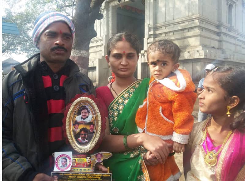 ಬಳ್ಳಾರಿ: ನಟ ಅಂಬರೀಶ್ ನಿಧನರಾಗಿ ಹನ್ನೊಂದನೇ ದಿನದ ಸ್ಮರಣೆಗಾಗಿ ಸಿರುಗುಪ್ಪ ತಾಲ್ಲೂಕಿನ ಬಗ್ಗೂರಿನ ಅಭಿಮಾನಿ ಅಂಬರೀಶ್ ಮತ್ತು ಸಿದ್ದಮ್ಮ ದಂಪತಿ ತಮ್ಮ ಇಬ್ಬರು ಮಕ್ಕಳೊಂದಿಗೆ ನಗರದ ಕನಕ ದುರ್ಗಮ್ಮ ಗುಡಿಯಲ್ಲಿ ಮಂಗಳವಾರ ಹನ್ನೊಂದು ತೆಂಗಿನ ಕಾಯಿ ಒಡೆದು ಹರಕೆತೀರಿಸಿದರು.