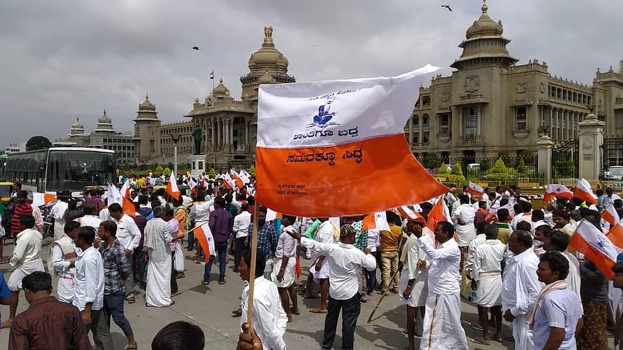 ಫ್ರೀಡಂ ಪಾರ್ಕ್ಗೆ ರಾಜ್ಯದ ವಿವಿಧ ಭಾಗಗಳಿಂದ ಬಂದ ಸಾವಿರಾರು ಮಂದಿ, ಅಲ್ಲಿಂದ ವಿಧಾನಸೌಧಕ್ಕೆ ಮೆರವಣಿಗೆ ನಡೆಸಿದರು. ವಿಧಾನಸೌಧ ಮುಂಭಾಗದ ರಸ್ತೆಯಲ್ಲಿ ಧರಣೆ ನಡೆಸಿದ್ದರಿಂದ ವಾಹನ ದಟ್ಟಣೆ ಉಂಟಾಗಿ ಸಂಚಾರ ಅಸ್ತವ್ಯಸ್ತವಾಯಿತು. ಪ್ರತಿಭಟನಕಾರರನ್ನು ಚದುರಿಸಲು ಪೊಲೀಸರು ಹರಸಾಹಸಪಟ್ಟರು.