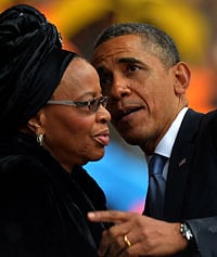 ಅಮೆರಿಕ ಅಧ್ಯಕ್ಷ ಬರಾಕ್ ಒಬಾಮ ತಮ್ಮ ಸ್ಫೂರ್ತಿಯ ಸೆಲೆ ನೆಲ್ಸನ್ ಮಂಡೇಲಾ ಅವರಿಗೆ ಅಂತಿಮ ನಮನ ಸಲ್ಲಿಸಿದರು.ಈ ಸಂದರ್ಭದಲ್ಲಿ ಮಾತನಾಡಿದ ಅವರು, ‘ಮಂಡೇಲಾ ಅವರು ಮಹಾನ್ ಪುರುಷ. ಅವರು ಗಾಂಧಿ, ಮಾರ್ಟಿನ್ ಲೂಥರ್ ಕಿಂಗ್ ಹಾಗೂ ಅಬ್ರಹಾಂ ಲಿಂಕನ್ ಅವರ ಸಾಲಿಗೆ ಸೇರುತ್ತಾರೆ. ಕಪ್ಪುಜನರ ಸಮಾನತೆಗಾಗಿ ಹೋರಾಡಿ, ನ್ಯಾಯ ದೊರಕಿಸಿ ಕೊಟ್ಟ ಆ ವ್ಯಕ್ತಿತ್ವವನ್ನು ಮಾತುಗಳಲ್ಲಿ ಬಣ್ಣಿಸಲು ಸಾಧ್ಯವಿಲ್ಲ. ಅವರು ಇಪ್ಪತ್ತನೇ ಶತಮಾನದ ಅದ್ಭುತ ನಾಯಕ’ ಎಂದು ಬಣ್ಣಿಸಿದರು.