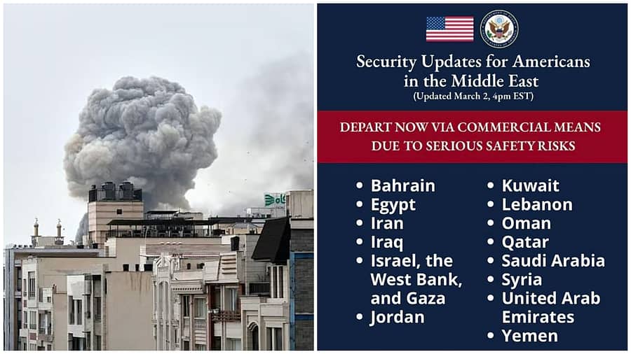 ಈ ಕುರಿತು ಅಮೆರಿಕದ ಕೌನ್ಸುಲರ್ ವ್ಯವಹಾರಗಳ ಸಹಾಯಕ ಕಾರ್ಯದರ್ಶಿ ಮೋರಾ ನಮ್ದಾರ್ ಎಕ್ಸ್ನಲ್ಲಿ ಪೋಸ್ಟ್ ಹಂಚಿಕೊಂಡಿದ್ದಾರೆ. ‘ಅಮೆರಿಕದ ಪ್ರಜೆಗಳು ಲಭ್ಯವಿರುವ ಯಾವುದೇ ವಾಣಿಜ್ಯ ಸಾರಿಗೆಯನ್ನು ಬಳಸಿಕೊಂಡು ತಕ್ಷಣವೇ ಹೊರಡಿ’ ಎಂದು ಅವರು ತಿಳಿಸಿದ್ದಾರೆ.