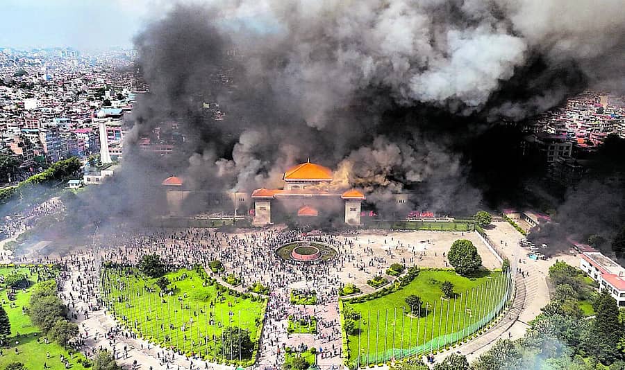 ಕಠ್ಮಂಡುವಿನಲ್ಲಿ ಪ್ರತಿಭಟನಕಾರರು ಸಂಸತ್ ಭವನಕ್ಕೆ ನುಗ್ಗಿ, ಕಟ್ಟಡಕ್ಕೆ ಬೆಂಕಿ ಹಚ್ಚಿದ ನಂತರ ಹೊಗೆ ದಟ್ಟೈಸಿತ್ತು