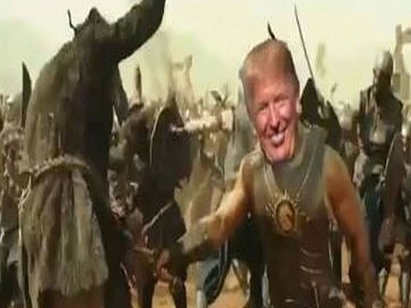 ರಾಜಮೌಳಿ ನಿರ್ದೇಶನದ ಜನಪ್ರಿಯ ಸಿನಿಮಾ‘ಬಾಹುಬಲಿ’ಯ ಎಡಿಟ್ ಮಾಡಲಾದ ವಿಡಿಯೊ ತುಣುಕೊಂದನ್ನುSol ಎಂಬ ವೆರಿಫೈ ಅಲ್ಲದ ಟ್ವಿಟರ್ ಖಾತೆಯಲ್ಲಿಟ್ವೀಟ್ ಮಾಡಲಾಗಿತ್ತು. ಅದರಲ್ಲಿ ಪ್ರಬಾಸ್ ಪಾತ್ರಕ್ಕೆ ಟ್ರಂಪ್ ಮುಖವನ್ನು ಹೊಂದಿಸಲಾಗಿದೆ. ಈ ಟ್ವೀಟ್ ಅನ್ನು ಟ್ರಂಪ್ ರೀಟ್ವೀಟ್ ಮಾಡಿಕೊಂಡಿದ್ದಾರೆ. ಅದರ ಜತೆಗೆ ಭಾರತದ ಸ್ನೇಹಿತರೊಂದಿಗೆ ಇರಲು ಎದುರು ನೋಡುತ್ತಿದ್ದೇನೆ ಎಂದು ಟ್ರಂಪ್ ಬರೆದುಕೊಂಡಿದ್ದಾರೆ.