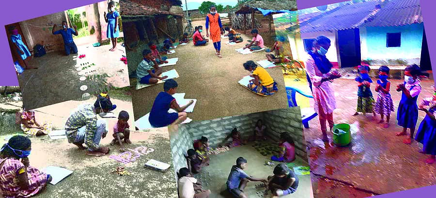 ಸರ್ಕಾರವು ಶಾಲೆಗಳಿಗೆ ಬೀಗ ಹಾಕಿದ್ದರಿಂದ ಬಯಲಲ್ಲೇ ಶಾಲೆಗಳು ಶುರುವಾದವು. ಮನೆಯ ಚಾಪೆ, ಜಮಖಾನ, ದುಪ್ಪಟಿಗಳೆಲ್ಲ ಹೊರಬಂದು ಮರದ ನೆರಳು, ಊರಿನ ಮಂಟಪ, ಗುಡಿ ಗುಂಡಾರಗಳ ಹಾಸುಗಳಾದವು. ದಾನಿಗಳು ಚಪ್ಪರ ಹಾಕಿಸಿಕೊಟ್ಟರು. ಸಾಮುದಾಯಿಕ ಮೈದಾನದಲ್ಲಿ ಟೆಂಟ್ ಹಾಕಿ ಶಾಲೆ ಶುರು ಮಾಡಲಾಯಿತು. ಸೋಂಕಿನ ಭಯವಿದ್ದೂ ಮನೆ ಮನೆಗೆ ಓಡಾಡಿದ ಅಂಗನವಾಡಿ ಕಾರ್ಯಕರ್ತರು, ಶಾಲೆಯಿಂದ ದೂರವಾಗಿದ್ದ ಎಲ್ಲ ಮಕ್ಕಳನ್ನೂ ತರಗತಿಗೆ ಬರುವಂತೆ ಮಾಡುವಲ್ಲಿ ಯಶಸ್ವಿಯಾದರು.