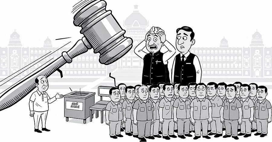 ಬೊಕ್ಕಸದಲ್ಲಿ ಹಣವಿಲ್ಲ ಎಂಬ ಕಾರಣಕ್ಕೆ ಹಂಗಾಮಿ/ ಹೊರಗುತ್ತಿಗೆ ಕಾರ್ಮಿಕರಿಗೆ ನ್ಯಾಯ ಒದಗಿಸಲು ಮೀನಾಮೇಷ ಎಣಿಸುತ್ತಿರುವ ಸರ್ಕಾರಗಳಿಗೆ ಕೋರ್ಟ್ ಹೀಗೆ ಹೇಳಿದೆ: ‘ಕೇಂದ್ರ ಮತ್ತು ರಾಜ್ಯ ಸರ್ಕಾರಗಳು ಬರೀ ಮಾರುಕಟ್ಟೆ ಭಾಗೀದಾರರಲ್ಲ. ಅವರು ಸಂವಿಧಾನದ ಮಾಲೀಕರು. ಹಾಗಾಗಿ, ಅತ್ಯಂತ ಅಗತ್ಯ ಮತ್ತು ಅನಿವಾರ್ಯವಾದ ಸರ್ಕಾರಿ ಕರ್ತವ್ಯಗಳನ್ನು ಸತತವಾಗಿ ನಿರ್ವಹಿಸುವ ನೌಕರರ ಮೇಲೆ ನಿಮ್ಮ ಆಯವ್ಯಯವನ್ನು ಹೊರಿಸಲು ಹೋಗಬೇಡಿ. ಹಂಗಾಮಿ/ ಹೊರಗುತ್ತಿಗೆ ಎಂಬ ತಾತ್ಕಾಲಿಕ ಲೇಬಲ್ಗಳನ್ನು ಹಚ್ಚಿ ಆ ನೌಕರರಿಂದ ದೀರ್ಘಕಾಲ ರೆಗ್ಯುಲರ್ ಕೆಲಸದ ದುಡಿತ ಪಡೆದುಕೊಂಡು ಅವರನ್ನು ಅಭದ್ರತೆಗೆ ದೂಡುವುದು ಸಾರ್ವಜನಿಕ ಆಡಳಿತ ವ್ಯವಸ್ಥೆಯ ಮೇಲಿನ ವಿಶ್ವಾಸವನ್ನು ಕುಂದಿಸುತ್ತದೆ. ನಿಜ ಸಾರ್ವಜನಿಕ ನೀತಿಯಲ್ಲಿ ಆರ್ಥಿಕ ಬಿಕ್ಕಟ್ಟಿಗೂ ಪಾತ್ರವಿದೆ. ಹಾಗೆಂದು ಅದು ವಿವೇಕ ಮತ್ತು ಕಾನೂನುಬದ್ಧ ಸೇವೆಯನ್ನು ಮೀರುವ ‘ತಾಲಿಸ್ಮಾನ್’ ಆಗಬಾರದು’.