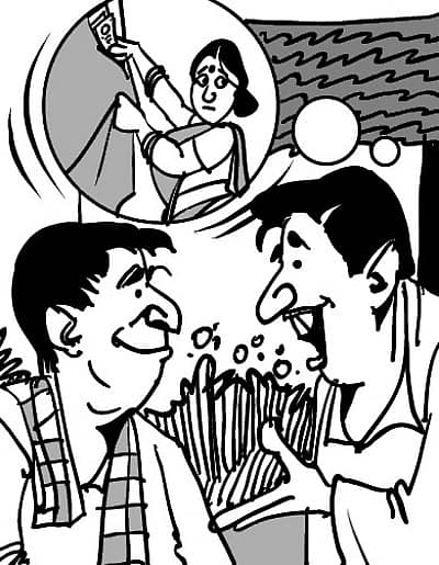 ‘ಆಫೀಸ್ ಬಾಸು ಅವನನ್ನ ಕರೆದು ‘ನಿನ್ ಜೇಬಿನಾಗಿದ್ದ ರೊಕ್ಕ ಎಲ್ಲೋದ್ವು ಅಂತ ನಂಗೊತ್ತು, ನಿನ್ ಹೆಂಡ್ತಿ ಎತ್ತಿರ್ತಾಳೆ ಹೋಗಿ ಕೇಳು ಅಂದ್ರಂತೆ’.