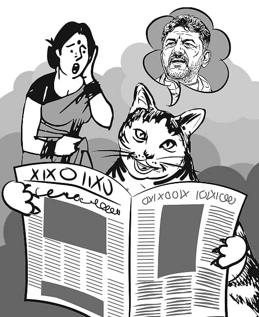‘ಜನರು, ಶಾಸಕರು, ಮಾಧ್ಯಮದವರು ಎಲ್ಲರೂ ಡಿಕೇಶಂಕಲ್ಲು ಸಿಎಂ ಆಗಲಿ ಅಂತ ಕನಸು ಕಾಣುತ್ತಿದ್ದಾ ರಂತೆ. ಖರೇ ಅಂದ್ರ ನನ್ನ ಕನಸಿನಾಗೂ ಡಿಕೇಶಂಕಲ್ಲು ಸಿಎಂ ಕುರ್ಚಿ ಮೇಲೆ ಕುಂತಿದ್ದರು!’ ಎಂದಿತು ಬೆಕ್ಕಣ್ಣ.