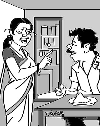 ‘ನಿಂಗೆ ಯಜಮಾನಿಕಿ ಬಿಟ್ ಕೊಡಾಣ ಅಂದ್ರೆ ಬರೀ ಗುಡಿ ಗುಂಡಾರ ಸುತ್ತುತೀಯ. ಪ್ರಾರ್ಥನೆ, ಫಲ ಅಂತ ಪ್ರವಚನ ಹೇಳ್ತೀಯ. ಅದೆಲ್ಲೋ ರೇಷ್ಮೆ ಸೀರೆ ಕಮ್ಮಿ ರೇಟಿಗೆ ಕೊಡ್ತಾರೆ ಅಂತ ದಿನಗಟ್ಲೆ ಕ್ಯೂ ನಿಲ್ತೀಯ... ಯಜಮಾನಿಕಿ ಹೆಂಗ್ ನಡೆಸ್ತೀಯ?’