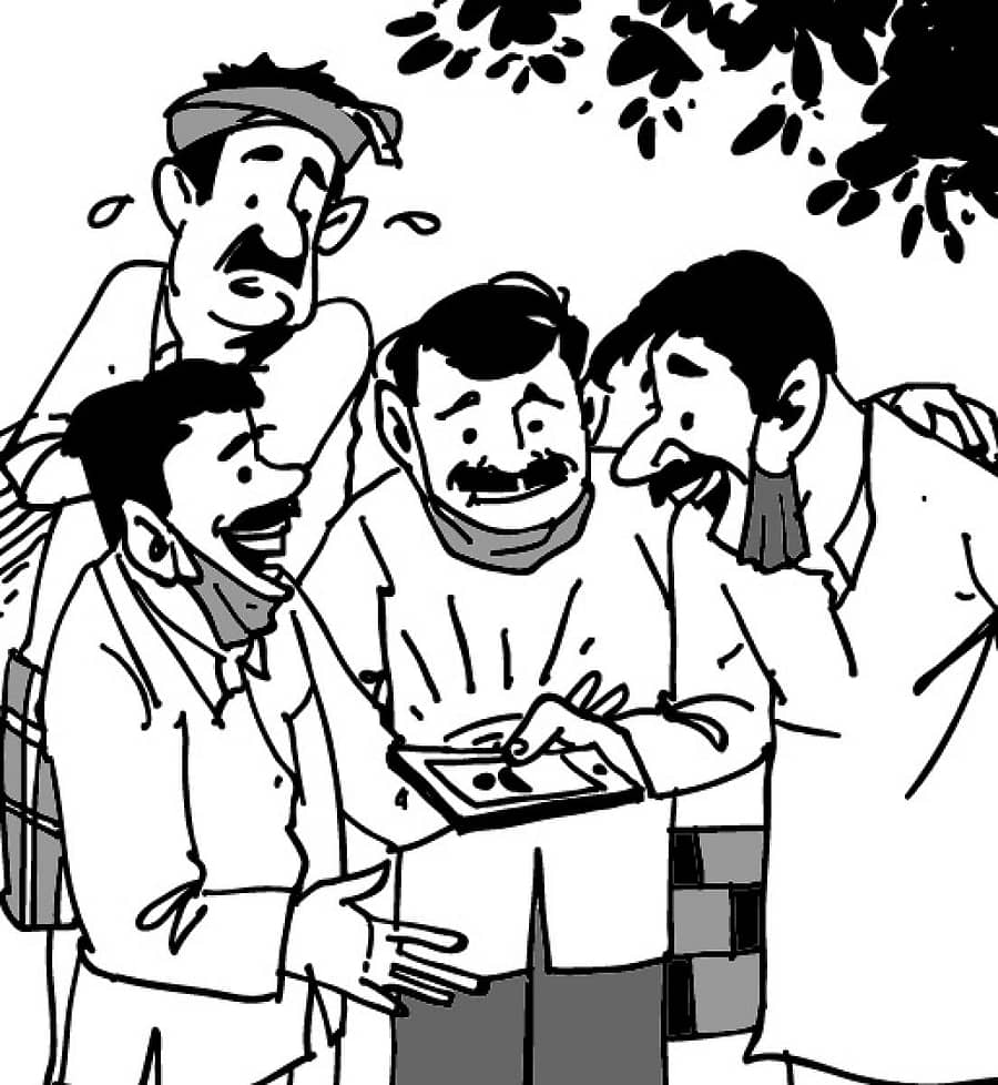 ಗುಡ್ಡೆಗೆ ರೇಗಿಹೋಯಿತು ‘ಏಯ್, ಏನ್ ತೆಲಿ ತಿಂತೀಯಲೆ, ಇರು ಅದ್ಯಾರು ಶ್ವೇತ ಅಂತ ನಿನ್ ಹೆಂಡ್ತಿಗೇ ಕೇಳಿಬಿಡ್ತೀನಿ’ ಎಂದವನೆ ಪಟ್ ಅಂತ ದುಬ್ಬೀರನ ಹೆಂಡ್ತಿಗೆ ಫೋನ್ ಮಾಡಿ ಸ್ಪೀಕರ್ ಆನ್ ಮಾಡಿದ ‘ಚೆಲ್ವಕ್ಕ, ಇಲ್ಲಿ ನಿನ್ ಗಂಡ ಅದ್ಯಾರೋ ಶ್ವೇತ, ಪತ್ರ ಅಂತ ತೆಲಿ ತಿಂತಿದಾನೆ. ಯಾರದು ಶ್ವೇತ?’ ಅಂದ.