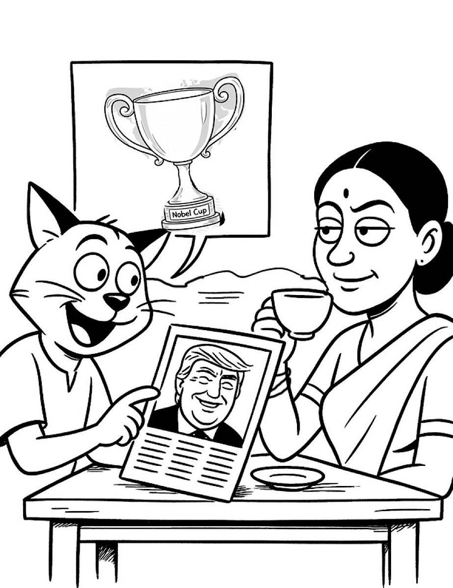 ‘ನೊಬೆಲ್ ಕಪ್ ಸಿಗದಿದ್ದರೂ ಶಾಂತಿ ಸ್ಥಾಪನೆ ಕೆಲಸ ಮುಂದುವರಿಸ್ತೀನಿ ಅಂತ ಟ್ರಂಪಣ್ಣ ಘೋಷಣೆ ಮಾಡ್ಯಾನೆ. ಇನ್ಮುಂದೆ ಭೂಲೋಕದಲ್ಲಿ ಎಲ್ಲೂ ಜಗಳಾ ಅನ್ನೂದೆ ಇರಂಗಿಲ್ಲ!’ ಬೆಕ್ಕಣ್ಣ ಅಭಿಮಾನದಿಂದ ಹೇಳಿತು.