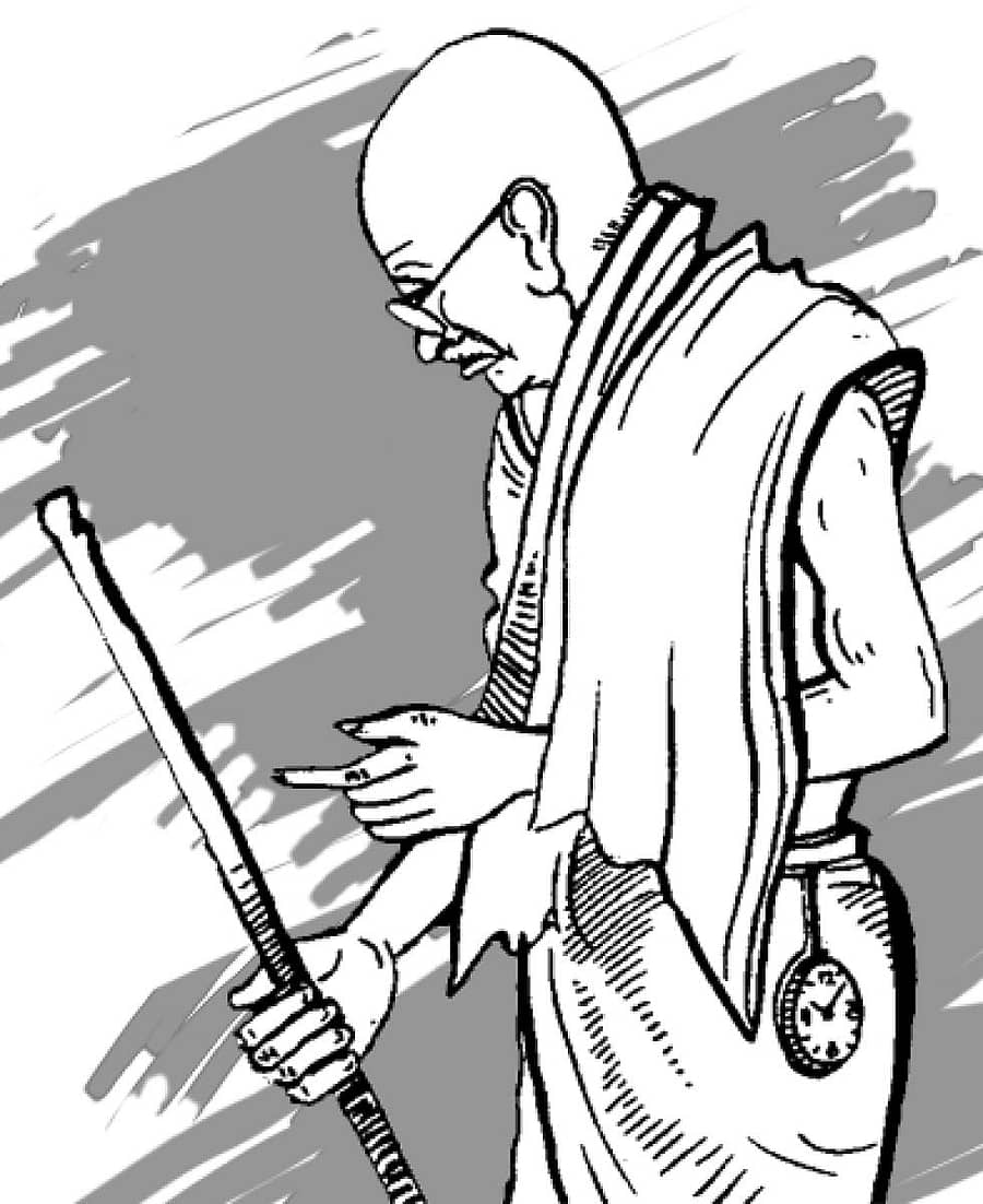 ಖಾದಿ ಭಂಡಾರವೊಂದು ಕಂಡಿದ್ದೇ ಖುಷಿ ಯಿಂದ ಒಳಹೊಕ್ಕರು. ಗೋಡೆಯಲ್ಲಿ ದೊಡ್ಡದಾಗಿ ತೂಗುಹಾಕಿದ್ದ ಕ್ಯಾಲೆಂಡರ್ ಕಂಡಾಗ ಖುಷಿಯ ಬಲೂನು ಠುಸ್ಸೆಂದಿತು. ಫೋಟೊದಲ್ಲಿ ಚರಕದ ಮುಂದೆ ನೂಲುತ್ತ ಅರೆನಗ್ನರಾಗಿ ಕೂತ ಅವರನ್ನು ಕೆಳತಳ್ಳಿ, ಗರಿಗರಿ ಖಾದಿ ಜುಬ್ಬ, ಪೈಜಾಮ ತೊಟ್ಟು, ತಲೆಗೊಂದು ಬಣ್ಣದ ರುಮಾಲು ಸುತ್ತಿ, ನೂಲುವ ನಟನೆ ಮಾಡುತ್ತ ಕ್ಯಾಮೆರಾಗೆ ಪೋಸು ಕೊಟ್ಟ ನಾಯಕನಟನನ್ನು ನೋಡಿ ‘ಅರೆ ಇವನಾರವ’ ಎಂದು ಗಾಬರಿಯಾಗಿಬಿಟ್ಟರು. ಎಲ್ಲಾದರೂ ತಮ್ಮ ಕನ್ನಡಕ, ಕೋಲನ್ನೂ ಕಸಿದುಕೊಂಡರೆ, ಎಂದು ಇನ್ನಷ್ಟು ಗಾಬರಿ ಬಿದ್ದು ವಾಪಸು ಬಂದು, ತೊಳೆದಿಟ್ಟ ಪ್ರತಿಮೆಯನೇರಿ, ನೂರೈವತ್ತನೇ ಜಯಂತಿಯಂದು ಇನ್ನಷ್ಟು ಕಲ್ಲಾಗಿ ನಿಂತುಬಿಟ್ಟರು.
