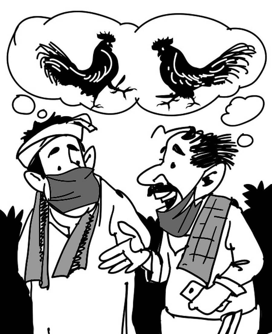 ‘ಸೇವಂತಿಗೆ ಚೆಂಡಿನಂತ ಮುದ್ದು ಕೋಳಿ’ ಅಂತ ತುರೇಮಣೆ ಹಳೆ ರೆಕಾರ್ಡು ಪಲುಕ್ತಾ ಕುಂತುದ್ದರು. ನಾನು ಅವರ ಗಾನ ಕೇಳಿ ‘ಅಲ್ಲಾ ಸಾ, ಅಲ್ಲಿ ನೋಡಿದ್ರೆ ಪಾಪದ ಸಿಎಮ್ಮು ಕೊರೊನಾ ಬಲಿ ಹಾಕಬೇಕು ಅಂತ ಮುಕ್ಕುರಿತಾವರೆ. ಇಕ್ಕಡೆ ಶಾಸಕರು ಕಾಲಿಗೆ ಕತ್ತಿ ಕಟ್ಟಿಕ್ಯಂಡು ಕೋಳಿಜಗಳ ಆಡತಾ ಕುಂತವ್ರೆ! ಹೆಂಗೆ ಸಾರ್?’ ಅಂತಂದೆ.