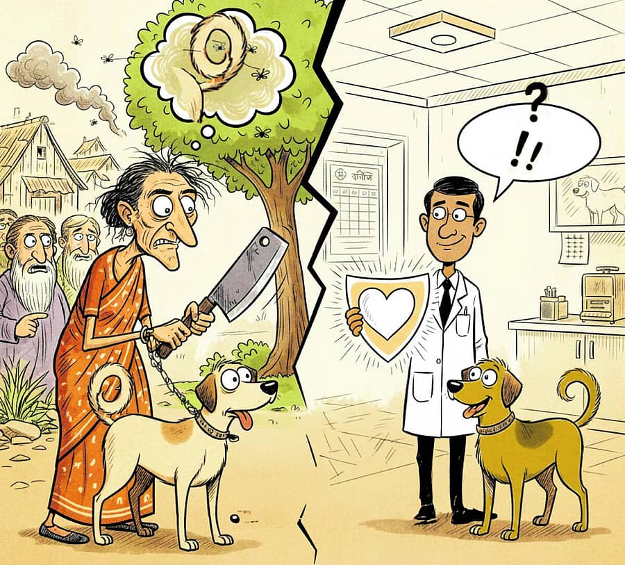 ‘ಹಂಗೆಲ್ಲ ಮರಗಟ್ಟಿಸೋದಕ್ಕೆ ಮಾತ್ರೆ ಬರಲ್ಲ. ಅಲ್ದೇ ಹಾಗೆಲ್ಲ ಸುಮ್ಸುಮ್ನೇ ಬಾಲ ಕಟ್ ಮಾಡ್ಬಾರ್ದು. ಇದು ಕಾನೂನು ಪ್ರಕಾರವೂ ತಪ್ಪು. ಅಷ್ಟಕ್ಕೂ ಬಾಲ ಕಟ್ ಮಾಡೋದು ಯಾಕೆ?’ ಎಂದೆ. ನನ್ನ ಮಾತು ಇಷ್ಟವಾಗಲಿಲ್ಲವೆಂಬುದು ಅವಳ ವರ್ತನೆಯಲ್ಲೇ ಗೊತ್ತಾಗುವಂತಿತ್ತು. ‘ಅದ್ರ ಬಾಲ ಸುರುಳಿ ಸುತ್ತಿದೆ. ಅದರೊಳಗೆ ನೊಣ ದಾಟಬಾರ್ದು ಅಂತ ಹಿರಿಯರು ಹೇಳ್ತಾರೆ. ಹಂಗಾದ್ರೆ ಮನೆಗೆ ಕೆಡುಕಂತೆ’.