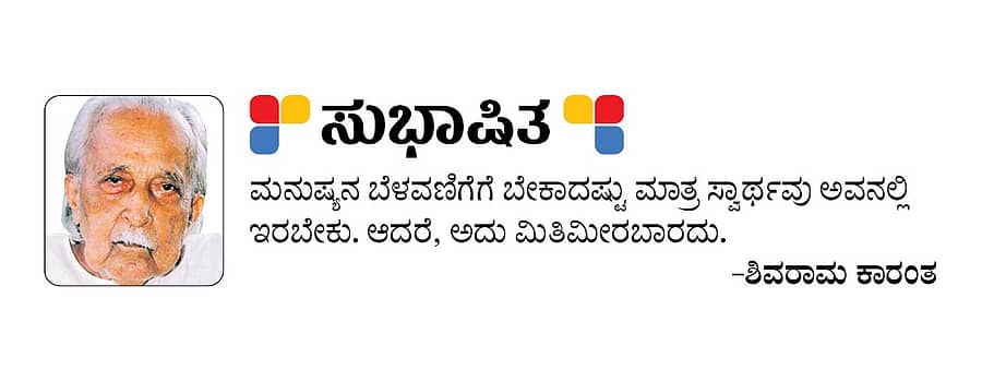 <p>ಸುಭಾಷಿತ | ಶಿವರಾಮ ಕಾರಂತ</p>.<div><p><strong>ಪ್ರಜಾವಾಣಿ ಆ್ಯಪ್ ಇಲ್ಲಿದೆ: <a href="https://play.google.com/store/apps/details?id=com.tpml.pv">ಆಂಡ್ರಾಯ್ಡ್ </a>| <a href="https://apps.apple.com/in/app/prajavani-kannada-news-app/id1535764933">ಐಒಎಸ್</a> | <a href="https://whatsapp.com/channel/0029Va94OfB1dAw2Z4q5mK40">ವಾಟ್ಸ್ಆ್ಯಪ್</a>, <a href="https://www.twitter.com/prajavani">ಎಕ್ಸ್</a>, <a href="https://www.fb.com/prajavani.net">ಫೇಸ್ಬುಕ್</a> ಮತ್ತು <a href="https://www.instagram.com/prajavani">ಇನ್ಸ್ಟಾಗ್ರಾಂ</a>ನಲ್ಲಿ ಪ್ರಜಾವಾಣಿ ಫಾಲೋ ಮಾಡಿ.</strong></p></div>