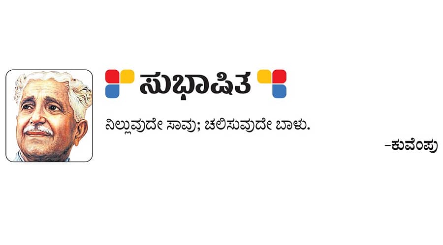 <p>ಸುಭಾಷಿತ: ಕುವೆಂಪು</p>.<div><p><strong>ಪ್ರಜಾವಾಣಿ ಆ್ಯಪ್ ಇಲ್ಲಿದೆ: <a href="https://play.google.com/store/apps/details?id=com.tpml.pv">ಆಂಡ್ರಾಯ್ಡ್ </a>| <a href="https://apps.apple.com/in/app/prajavani-kannada-news-app/id1535764933">ಐಒಎಸ್</a> | <a href="https://whatsapp.com/channel/0029Va94OfB1dAw2Z4q5mK40">ವಾಟ್ಸ್ಆ್ಯಪ್</a>, <a href="https://www.twitter.com/prajavani">ಎಕ್ಸ್</a>, <a href="https://www.fb.com/prajavani.net">ಫೇಸ್ಬುಕ್</a> ಮತ್ತು <a href="https://www.instagram.com/prajavani">ಇನ್ಸ್ಟಾಗ್ರಾಂ</a>ನಲ್ಲಿ ಪ್ರಜಾವಾಣಿ ಫಾಲೋ ಮಾಡಿ.</strong></p></div>
