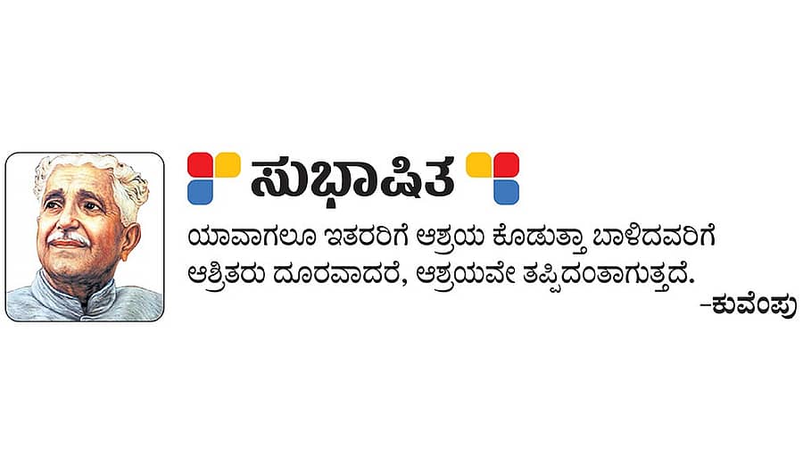 <p>ಸುಭಾಷಿತ: ಕುವೆಂಪು</p>.<div><p><strong>ಪ್ರಜಾವಾಣಿ ಆ್ಯಪ್ ಇಲ್ಲಿದೆ: <a href="https://play.google.com/store/apps/details?id=com.tpml.pv">ಆಂಡ್ರಾಯ್ಡ್ </a>| <a href="https://apps.apple.com/in/app/prajavani-kannada-news-app/id1535764933">ಐಒಎಸ್</a> | <a href="https://whatsapp.com/channel/0029Va94OfB1dAw2Z4q5mK40">ವಾಟ್ಸ್ಆ್ಯಪ್</a>, <a href="https://www.twitter.com/prajavani">ಎಕ್ಸ್</a>, <a href="https://www.fb.com/prajavani.net">ಫೇಸ್ಬುಕ್</a> ಮತ್ತು <a href="https://www.instagram.com/prajavani">ಇನ್ಸ್ಟಾಗ್ರಾಂ</a>ನಲ್ಲಿ ಪ್ರಜಾವಾಣಿ ಫಾಲೋ ಮಾಡಿ.</strong></p></div>