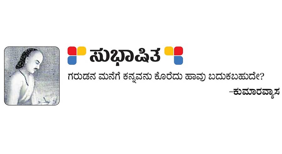 <p>ಸುಭಾಷಿತ: ಸೋಮವಾರ, ಸೆಪ್ಟೆಂಬರ್ 01, 2025</p>.<div><p><strong>ಪ್ರಜಾವಾಣಿ ಆ್ಯಪ್ ಇಲ್ಲಿದೆ: <a href="https://play.google.com/store/apps/details?id=com.tpml.pv">ಆಂಡ್ರಾಯ್ಡ್ </a>| <a href="https://apps.apple.com/in/app/prajavani-kannada-news-app/id1535764933">ಐಒಎಸ್</a> | <a href="https://whatsapp.com/channel/0029Va94OfB1dAw2Z4q5mK40">ವಾಟ್ಸ್ಆ್ಯಪ್</a>, <a href="https://www.twitter.com/prajavani">ಎಕ್ಸ್</a>, <a href="https://www.fb.com/prajavani.net">ಫೇಸ್ಬುಕ್</a> ಮತ್ತು <a href="https://www.instagram.com/prajavani">ಇನ್ಸ್ಟಾಗ್ರಾಂ</a>ನಲ್ಲಿ ಪ್ರಜಾವಾಣಿ ಫಾಲೋ ಮಾಡಿ.</strong></p></div>