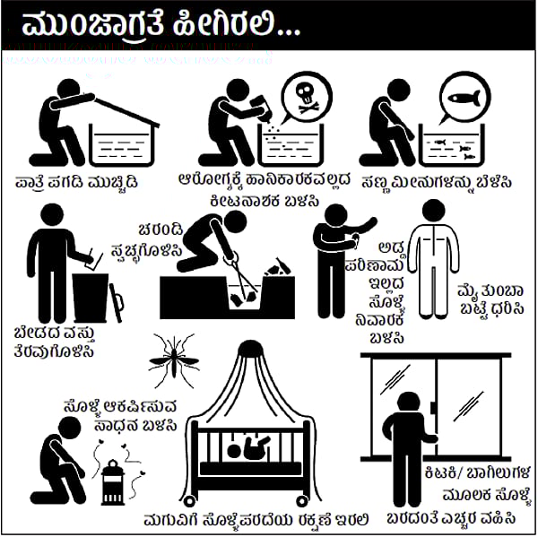 * ಪ್ರತಿ ಸಲ ಮಳೆಗಾಲ ಆರಂಭವಾಗುವಾಗಲೇ ಡೆಂಗಿ ಹೆಚ್ಚು ಕಾಡುತ್ತದೆ. ಇಲಾಖೆ ಮುನ್ನೆಚ್ಚರಿಕೆ ವಹಿಸುವುದಿಲ್ಲವೇಕೆ? ಇದಕ್ಕೆ ಶಾಶ್ವತ ಪರಿಹಾರ ಇಲ್ಲವೇ?