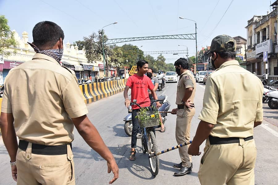 ಕೊರೊನಾ ಸೋಂಕು ಹರಡದಂತೆ ಮುನ್ನೆಚ್ಚರಿಕೆ ಕ್ರಮವಾಗಿ ಸರ್ಕಾರ ಘೋಷಿಸಿರುವ ಲಾಕ್‌ಡೌನ್‌ ಆದೇಶ ಉಲ್ಲಂಘಿಸಿ ಬೆಳಗಾವಿ, ಗದಗ, ಮೈಸೂರು ಸೇರಿದಂತೆ ಹಲವು ಜಿಲ್ಲೆಗಳಲ್ಲಿ ಅನಾವಶ್ಯಕವಾಗಿ ಸುತ್ತಾಡುತ್ತಿದ್ದ ಕೆಲವರಿಗೆ ಪೊಲೀಸರು ಲಾಠಿ ರುಚಿ ತೋರಿಸಿದ್ದಾರೆ. –ಪ್ರಜಾವಾಣಿ ಚಿತ್ರಗಳು