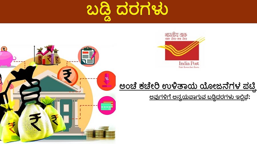 ಅಂಚೆ ಕಚೇರಿ ಉಳಿತಾಯ ಯೋಜನೆಗಳ ಪಟ್ಟಿ ಮತ್ತು ಅವುಗಳಿಗೆ ಅನ್ವಯವಾಗುವ ಬಡ್ಡಿದರಗಳು ಇಲ್ಲಿವೆ: