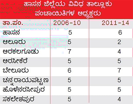 ಹೆಸರಿನ ಮುಂದೆ ತಾಲ್ಲೂಕು ಪಂಚಾಯಿತಿ ಮಾಜಿ ಅಧ್ಯಕ್ಷ, ಅಥವಾ ಜಿಲ್ಲಾ ಪಂಚಾಯಿತಿಯ ಮಾಜಿ ಅಧ್ಯಕ್ಷ ಎಂದು ನಮೂದಿಸಬಹುದು ಎಂಬುದನ್ನು ಬಿಟ್ಟರೆ ಹಾಸನ ಜಿಲ್ಲೆಯಲ್ಲಿ ಈ ಹುದ್ದೆಗಳನ್ನು ‘ಅಲಂಕರಿಸಿದವರು’ ಹೇಳಿಕೊಳ್ಳುವಂಥ ಸಾಧನೆ ಮಾಡಿದ್ದು ವಿರಳ. ಹಾಸನ ಜಿಲ್ಲೆಯ ಮಟ್ಟಿಗೆ ಈ ಎರಡೂ ಹುದ್ದೆಗಳು ಅಷ್ಟಕ್ಕೇ ಸೀಮಿತ. ಜಿಲ್ಲೆಯ ಬಲಿಷ್ಠ ರಾಜಕೀಯ ಹಿನ್ನೆಲೆಯೂ ಇದಕ್ಕೆ ಕಾರಣವಾಗಿದೆ.