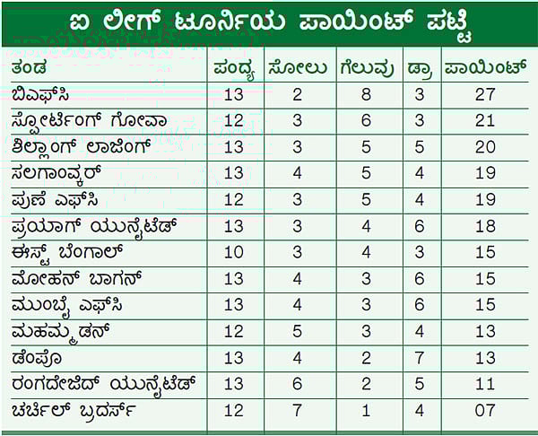 ಬೆಂಗಳೂರು: ಬೆಂಗಳೂರು ಫುಟ್ಬಾಲ್ ಕ್ಲಬ್ ತನ್ನ ಮೊದಲ ಐ ಲೀಗ್ ಟೂರ್ನಿಯಲ್ಲಿ ಭರವಸೆಯ ಹೆಜ್ಜೆಗಳನ್ನು ಇಟ್ಟಿದೆ. ಅನುಭವಿ ತಂಡಗಳನ್ನು ಹಿಂದಿಕ್ಕಿ ಪಾಯಿಂಟ್ ಪಟ್ಟಿಯಲ್ಲಿ ಅಗ್ರಸ್ಥಾನದಲ್ಲಿ ಗಟ್ಟಿಯಾಗಿರುವ ಆತಿಥೇಯರು ಭಾನು ವಾರ ನಡೆಯಲಿರುವ ಈಸ್ಟ್್ ಬೆಂಗಾಲ್ ಎದುರಿನ ಪಂದ್ಯದಲ್ಲಿ ತಿರುಗೇಟು ನೀಡಲು ಕಾತರದಿಂದ ಕಾಯುತ್ತಿದ್ದಾರೆ.
