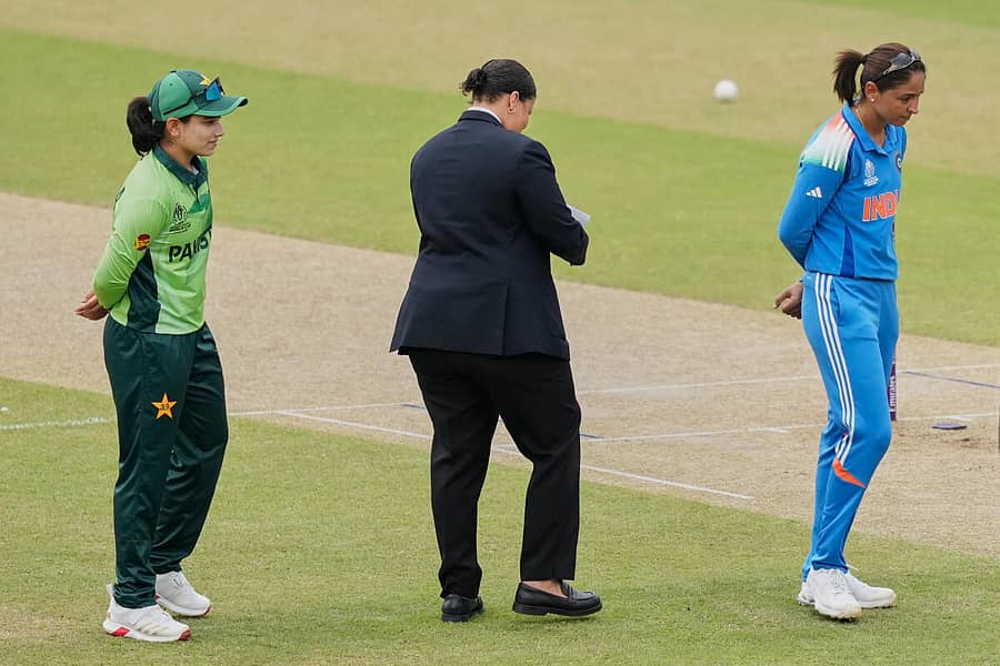ಇದೀಗ ಅದೇ ಸಂಪ್ರದಾಯ ಮಹಿಳಾ ವಿಶ್ವಕಪ್ನಲ್ಲೂ ಮುಂದುವರೆದಿದೆ. ಪಾಕಿಸ್ತಾನ ವಿರುದ್ಧ ಟಾಸ್ ವೇಳೆ ಭಾರತ ಕ್ರಿಕೆಟ್ ತಂಡದ ನಾಯಕಿ ಹರ್ಮನ್ಪ್ರೀತ್ ಕೌರ್ ಅವರು ಪಾಕ್ ನಾಯಕಿ ಫಾತಿಮಾ ಸನಾ ಅವರೊಂದಿಗೆ ಹಸ್ತಲಾಘವ ಮಾಡಲು ನಿರಾಕರಿಸಿದ್ದಾರೆ.