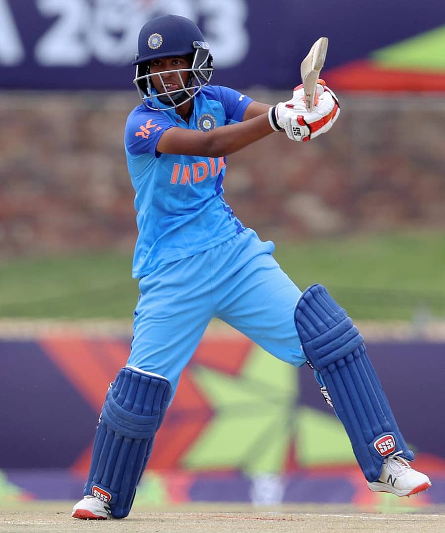 45 ಎಸೆತಗಳಲ್ಲಿ 10 ಬೌಂಡರಿಗಳ ನೆರವಿನಿಂದ ಅಜೇಯ 61 ರನ್ ಗಳಿಸಿದ ಶ್ವೇತಾ ಅವರು ಭಾರತದ ಗೆಲುವಿನ ಹಾದಿಯನ್ನು ಸುಗಮಗೊಳಿಸಿದರು. ಸೌಮ್ಯಾ ತಿವಾರಿ 22 ರನ್ ಗಳಿಸಿದರು.