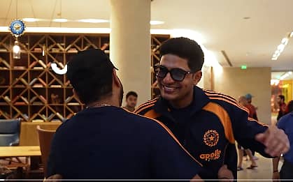 ಬಿಸಿಸಿಐ ಹಂಚಿಕೊಂಡಿರುವ ವಿಡಿಯೋದಲ್ಲಿ ಗಿಲ್ ಹೋಟೆಲ್ ಪ್ರವೇಶಿಸುತ್ತಿದ್ದಂತೆ ಮಾಜಿ ನಾಯಕ ರೋಹಿತ್ ಶರ್ಮಾ ಅವರನ್ನು ಭೇಟಿ ಮಾಡಿದರು. ಗಿಲ್ರನ್ನು ನೋಡುತ್ತಿದ್ದಂತೆ ರೋಹಿತ್ ಶರ್ಮಾ ಅಪ್ಪಿಕೊಂಡರು. ನಂತರ ಬಸ್ ಒಳಗೆ ವಿರಾಟ್ ಕೊಹ್ಲಿಯವರನ್ನು ಭೇಟಿಯಾಗಿ ಹಸ್ತಲಾಘವ ಮಾಡಿದ್ದಾರೆ.