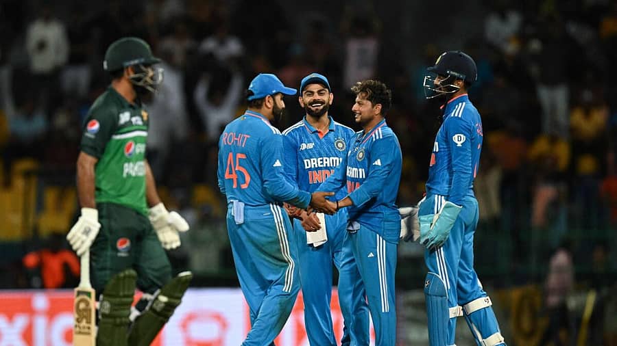 ಮೀಸಲು ದಿನವಾದ ಸೋಮವಾರ ಮುಂದುವರಿದ ಪಂದ್ಯದಲ್ಲಿ ಭಾರತ 50 ಓವರ್ಗಳಲ್ಲಿ 2 ವಿಕೆಟ್ಗಳಿಗೆ 356 ರನ್ ಕಲೆಹಾಕಿತು. ಕುಲದೀಪ್ ಯಾದವ್ (25ಕ್ಕೆ 5) ಅವರ ಕೈಚಳಕದ ಮುಂದೆ ನಲುಗಿದ ಬಾಬರ್ ಅಜಂ ಬಳಗ 32 ಓವರ್ಗಳಲ್ಲಿ 128 ರನ್ಗಳಿಗೆ ಆಲೌಟಾಯಿತು.