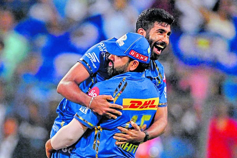 ರಾಯಲ್ ಚಾಲೆಂಜರ್ಸ್ ಬೆಂಗಳೂರು ತಂಡದ ವೈಶಾಖ ವಿಜಯಕುಮಾರ್ ವಿಕೆಟ್ ಪಡೆದ ಸಂಭ್ರಮವನ್ನು ಜಸ್ಪ್ರೀತ್ ಬೂಮ್ರಾ ಅವರು ಸಹ ಆಟಗಾರ ರೋಹಿತ್ ಶರ್ಮಾ ಅವರೊಂದಿಗೆ ಹಂಚಿಕೊಂಡರು.