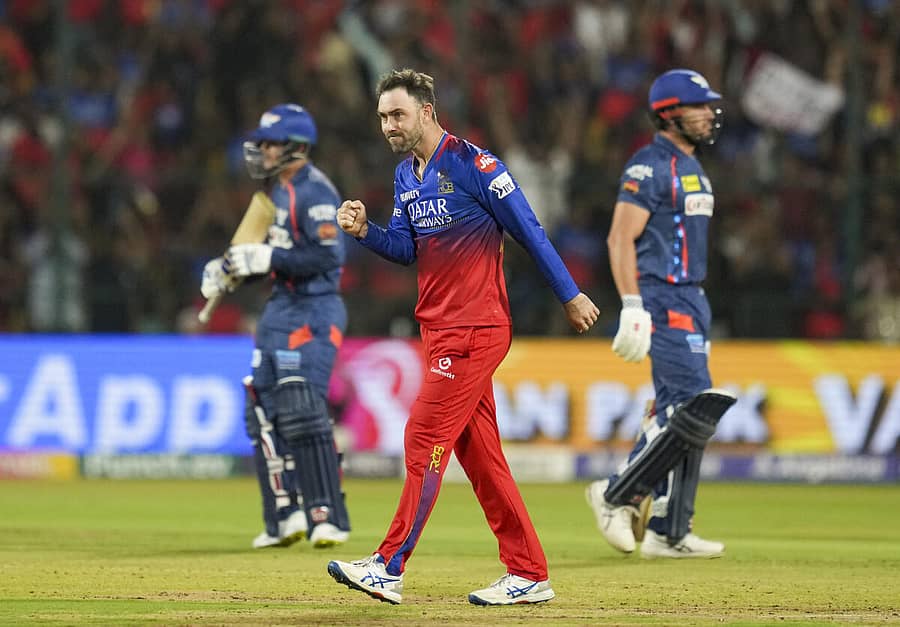 ಬೆಂಗಳೂರು ಪರ ಗ್ಲೆನ್ ಮ್ಯಾಕ್ಸ್ವೆಲ್ 23 ರನ್ಗೆ 2 ವಿಕೆಟ್ ಉರುಳಿಸಿದರು, ಮೊಹಮ್ಮದ್ ಸಿರಾಜ್, ದಯಾಳ್ ಮತ್ತು ಟಾಪ್ಲಿ ತಲಾ ಒಂದು ವಿಕೆಟ್ ಪಡೆದರು.