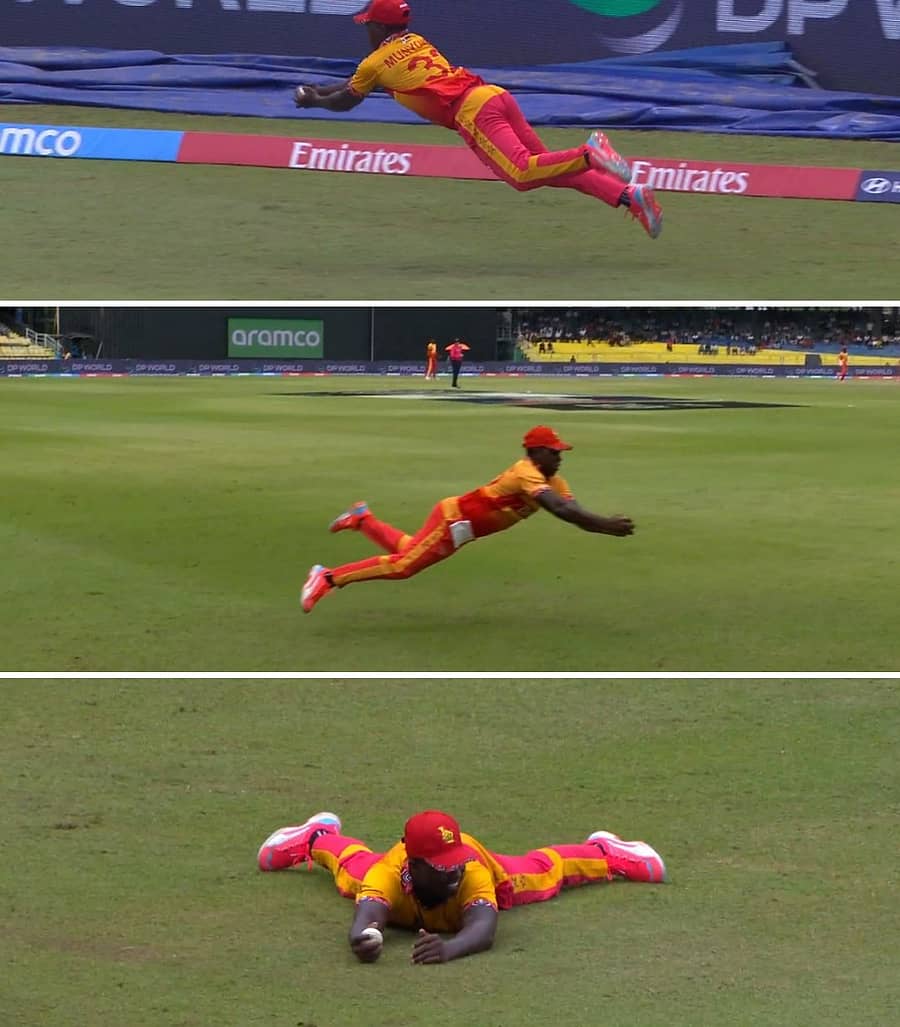 ಮುನ್ಯೂಂಗ ಹಿಡಿದ ಕ್ಯಾಚ್, ಪಂದ್ಯದ ಚಿತ್ರಣವನ್ನೇ ಬದಲಿಸಿ, ಜಿಂಬಾಬ್ವೆ ತಂಡವು 23 ರನ್ಗಳ ಜಯ ಸಾಧಿಸುವಲ್ಲಿ ನೆರವಾಯಿತು. ಇದೀಗ ಆ ಕ್ಯಾಚ್ನ ವಿಡಿಯೊ ಸಾಮಾಜಿಕ ಜಾಲತಾಣಗಳಲ್ಲಿ ಹರಿದಾಡುತ್ತಿದ್ದು, ‘ಈ ಟೂರ್ನಿಯ ಅತ್ಯುತ್ತಮ ಕ್ಯಾಚ್’ ಎಂದು ಕ್ರಿಕೆಟ್ ಪ್ರಿಯರು ಹೊಗಳುತ್ತಿದ್ದಾರೆ.