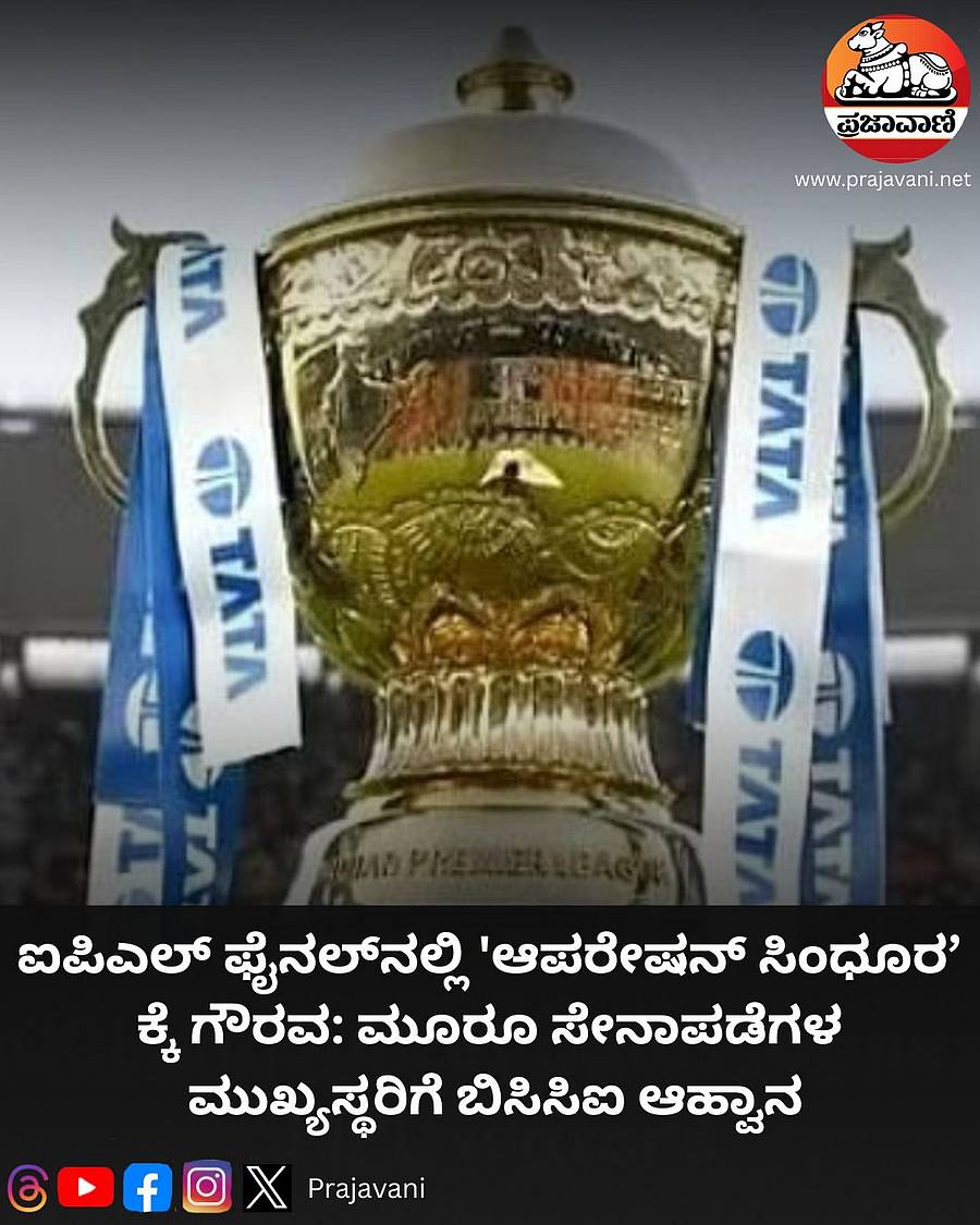 ನವದೆಹಲಿ: ಜೂನ್ 3 ರಂದು ಅಹಮದಾಬಾದ್ನಲ್ಲಿ ನಡೆಯಲಿರುವ ಐಪಿಎಲ್ ಫೈನಲ್ ಪಂದ್ಯಕ್ಕೆ ಭಾರತೀಯ ಸಶಸ್ತ್ರ ಪಡೆಗಳ ಮೂವರೂ ಮುಖ್ಯಸ್ಥರನ್ನು ಆಹ್ವಾನಿಸಲಾಗಿದೆ ಎಂದು ಬಿಸಿಸಿಐ ಮಂಗಳವಾರ ತಿಳಿಸಿದೆ. ಆಪರೇಷನ್ ಸಿಂಧೂರವನ್ನು ಯಶಸ್ವಿಯಾಗಿ ಕೈಗೊಂಡ ಭಾರತೀಯ ಸೇನಾಪಡೆಗಳಿಗೆ ಗೌರವ ಸಲ್ಲಿಸುವ ಸಮಾರಂಭವನ್ನು ಫೈನಲ್ ಪಂದ್ಯದ ಸಂದರ್ಭದಲ್ಲಿ ಹಮ್ಮಿಕೊಳ್ಳಲಾಗಿದೆ.