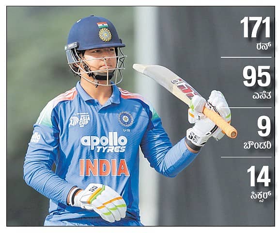 ಭಾರತ: 50 ಓವರುಗಳಲ್ಲಿ 6 ವಿಕೆಟ್ಗೆ 433 (ವೈಭವ ಸೂರ್ಯವಂಶಿ 171, ಆರನ್ ಜಾರ್ಜ್ 69, ವಿಹಾನ್ ಮಲ್ಹೋತ್ರಾ 69); ಯುಎಇ: 50 ಓವರುಗಳಲ್ಲಿ 7 ವಿಕೆಟ್ಗೆ 199 (ಪೃಥ್ವಿ ಮಧು 50, ಉದ್ದೀಶ್ ಸೂರಿ ಔಟಾಗದೇ 78, ದೀಪೇಶ್ ದೇವೇಂದ್ರನ್ 21ಕ್ಕೆ2).