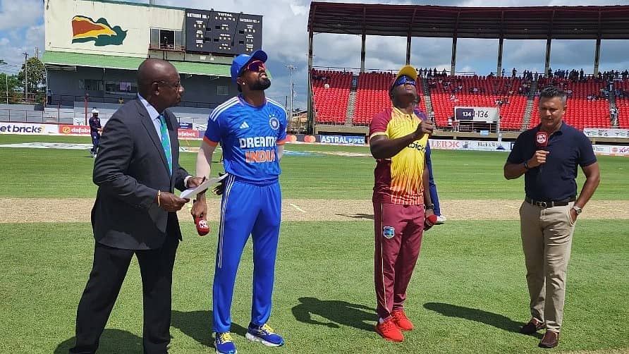 ಗಯಾನ: ಭಾರತ– ವೆಸ್ಟ್ ಇಂಡೀಸ್ ತಂಡಗಳು ಎರಡನೇ ಟಿ20 ಪಂದ್ಯದಲ್ಲಿ ಮುಖಾಮುಖಿಯಾಗಿವೆ.