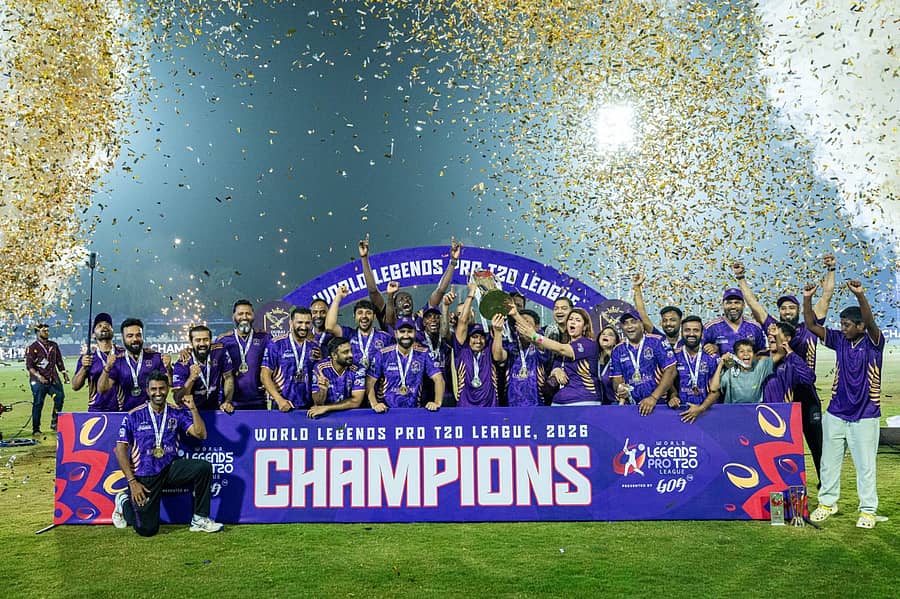 ಗೋವಾ: ಗೋವಾದಲ್ಲಿ ನಡೆದ ಚೊಚ್ಚಲ ಆವೃತ್ತಿಯ ವರ್ಲ್ಡ್ ಲೆಜೆಂಡ್ಸ್ ಪ್ರೊ ಟಿ20 ಲೀಗ್ ಅದ್ಧೂರಿ ಫೈನಲ್ನೊಂದಿಗೆ ಯಶಸ್ವಿಯಾಗಿ ಮುಕ್ತಾಯಗೊಂಡಿದೆ. ಪುಣೆ ಪ್ಯಾಂಥರ್ಸ್ ವಿರುದ್ಧ 8 ವಿಕೆಟ್ಗಳ ಭರ್ಜರಿ ಜಯ ಸಾಧಿಸಿದ ದುಬೈ ರಾಯಲ್ಸ್ ತಂಡವು ಚಾಂಪಿಯನ್ ಪಟ್ಟವನ್ನು ಅಲಂಕರಿಸಿದೆ. ಟೂರ್ನಿಯ ನಿರ್ಣಾಯಕ ಹಂತದಲ್ಲಿ ಅದ್ಭುತ ಫಾರ್ಮ್ ತೋರಿದ ರಾಯಲ್ಸ್ ತಂಡವು ಸುಂದರ ಚೇಸಿಂಗ್ ಪ್ರದರ್ಶನದ ಮೂಲಕ ಈ ಗೆಲುವನ್ನು ತನ್ನದಾಗಿಸಿಕೊಂಡಿತು.