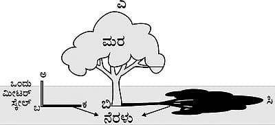 `ಅ.ಬ.' ಒಂದು ಮೀಟರ್ ಉದ್ದವಿರುವ ಕೋಲು. `ಬ.ಕ.' ಕೋಲಿನ ನೆರಳು. ಅದನ್ನು ಸ್ಕೇಲಿನಿಂದ ಅಳೆದಾಗ 1.5 ಮೀಟರ್ ನೆರಳಿದೆ. ಈಗ ಕಾಂಡ ಹೊರಟ ಸ್ಥಳದಿಂದ ಮರದ ಒಟ್ಟು ನೆರಳನ್ನು ಸ್ಕೇಲಿನಿಂದ ಅಳೆಯುತ್ತಾ ಹೋದಾಗ ಅದರ ಉದ್ದ (ಬಿ.ಸಿ.) 25 ಮೀಟರ್. ಅಂದರೆ ಮರದ ಎತ್ತರ (ಎ.ಬಿ.) 16.6 ಮೀಟರ್.