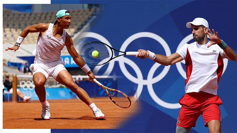 ಪ್ಯಾರಿಸ್ ಒಲಿಂಪಿಕ್ ಟೆನಿಸ್ ಟೂರ್ನಿಗಾಗಿ ಅಭ್ಯಾಸ ನಡೆಸುತ್ತಿರುವ ರಫೇಲ್ ನಡಾಲ್ ಹಾಗೂ ನೊವಾಕ್ ಜೊಕೊವಿಚ್