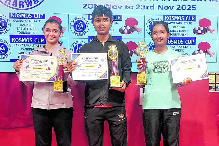 ಧಾರವಾಡ: ಬೆಂಗಳೂರಿನ ಗೌರವ್ ಗೌಡ ಮತ್ತು ಹಿಯಾ ಸಿಂಗ್ ಅವರು ಶನಿವಾರ ರಾಜ್ಯ ರ್ಯಾಂಕಿಂಗ್ ಟೇಬಲ್ ಟೆನಿಸ್ ಟೂರ್ನಿಯಲ್ಲಿ ಕ್ರಮವಾಗಿ 17 ವರ್ಷದೊಳಗಿನ ಬಾಲಕ ಮತ್ತು ಬಾಲಕಿಯರ ಸಿಂಗಲ್ಸ್ ಪ್ರಶಸ್ತಿ ಗೆದ್ದರು.