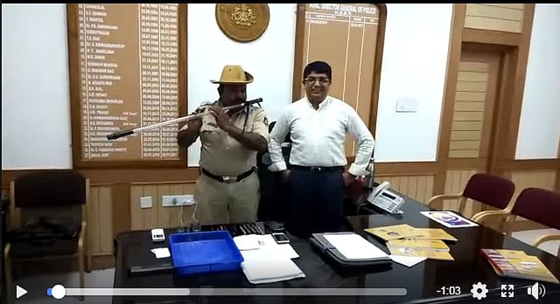 ಬೆಂಗಳೂರು: ಪೊಲೀಸ್ ಸಿಬ್ಬಂದಿಯೊಬ್ಬರು ಲಾಠಿಯಲ್ಲಿ ಕೊಳಲ ನಾದ ಹೊಮ್ಮಿಸುತ್ತಿರುವ ವಿಡಿಯೊ ಫೇಸ್ಬುಕ್ನಲ್ಲಿ ವೈರಲ್ ಆಗಿದೆ.