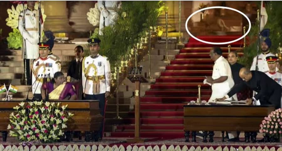 ಬಿಜೆಪಿಯ ದುರ್ಗಾ ದಾಸ್ ಅವರು ಪ್ರಮಾಣ ವಚನ ಸ್ವೀಕರಿಸಿದ ಬಳಿಕ ರಾಷ್ಟ್ರಪತಿ ಮುರ್ಮು ಅವರು ಅಭಿನಂದಿಸುತ್ತಿರುವ ವೇಳೆ ಹಿಂದೆ ಯಾವುದೋ ಪ್ರಾಣಿ ಭವನದ ಒಳಹೊಕ್ಕ ದೃಶ್ಯ ವಿಡಿಯೊದಲ್ಲಿ ಸೆರೆಯಾಗಿದೆ. ಅದು ದೊಡ್ಡ ಗಾತ್ರದ ಬೆಕ್ಕಾಗಿರುವ ಕಾರಣ ದೂರದಿಂದ ಚಿರತೆಯಂತೆಯೇ ಭಾಸವಾಗಿದೆ. ಸಾಮಾಜಿಕ ಜಾಲತಾಣದಲ್ಲಿ ವ್ಯಾಪಕವಾಗಿ ಹರಿದಾಡಿದ ವದಂತಿಗೆ ದೆಹಲಿ ಪೊಲೀಸರು ತೆರೆ ಎಳೆದಿದ್ದಾರೆ.