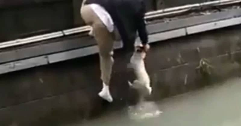 ಯುವಕನೊಬ್ಬ ಕಾಲುವೆ ದಡದಲ್ಲಿ ನಿಂತು ಕೈ ಚಾಚಿ ನಾಯಿ ಮರಿಯನ್ನು ರಕ್ಷಣೆ ಮಾಡಿದ್ದಾನೆ. ಆ ಯುವಕನಿಗೆ ಮತ್ತೊಬ್ಬ ಯುವಕ ಸಹಾಯ ಮಾಡಿದ್ದಾನೆ. ಯುವಕರು ನಾಯಿ ಮರಿಯನ್ನು ರಕ್ಷಣೆ ಮಾಡುತ್ತಿರುವ ವಿಡಿಯೊ ಸಾಮಾಜಿಕ ಜಾಲತಣಗಳಲ್ಲಿ ವೈರಲ್ ಆಗಿದೆ.