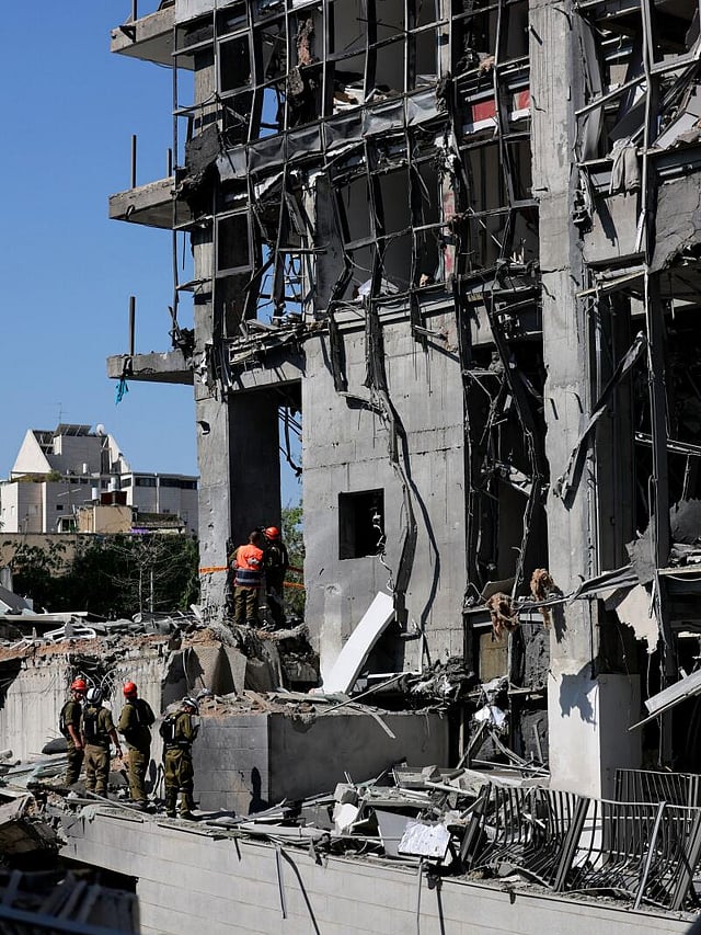 ಹಾನಿಯಾದ ಕಟ್ಟಡಗಳ ಬಳಿ ಇಸ್ರೇಲ್ ಸೇನೆ ರಕ್ಷಣಾ ಕಾರ್ಯ ನಡೆಸುತ್ತಿದೆ