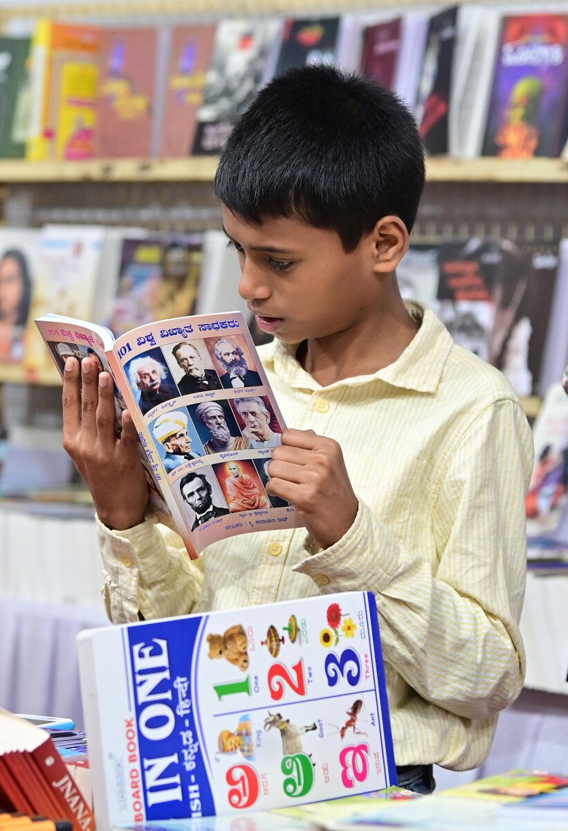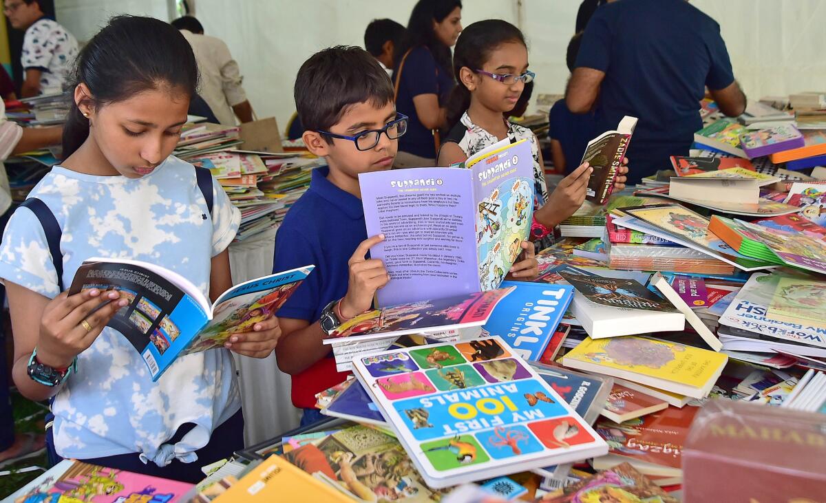 ಪುಸ್ತಕ ಮೇಳವೊಂದರಲ್ಲಿ ಓದಿನಲ್ಲಿ ಮಗ್ನರಾಗಿರುವ ಮಕ್ಕಳು