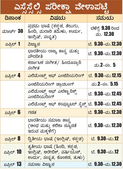 <p><strong>ಬೆಂಗಳೂರು:</strong> ಕರ್ನಾಟಕ ಪ್ರೌಢ ಶಿಕ್ಷಣ ಪರೀಕ್ಷಾ ಮಂಡಳಿಯು 2015ರ ಎಸ್ಸೆಸ್ಸೆಲ್ಸಿ ಪರೀಕ್ಷೆಗಳ ವೇಳಾಪಟ್ಟಿಯನ್ನು ಬುಧವಾರ </p>.<p>ಪ್ರಕಟಿಸಿದೆ. ಮಾರ್ಚ್ 30ರಿಂದ ಏಪ್ರಿಲ್ 13ರವರೆಗೆ ಪರೀಕ್ಷೆಗಳು ನಡೆಯಲಿವೆ.ಪ್ರತಿ ವಿಷಯದ ಪ್ರಶ್ನೆ ಪತ್ರಿಕೆ ಓದಲು ವಿದ್ಯಾರ್ಥಿಗಳಿಗೆ ಪರೀಕ್ಷೆ ಪ್ರಾರಂಭದಲ್ಲಿ 15 ನಿಮಿಷಗಳ ಕಾಲಾವಕಾಶ ನೀಡಲಾಗಿದೆ. ವೇಳಾಪಟ್ಟಿ ಇಂತಿದೆ.</p>.<p><strong>ಬೋಧನಾ ಅವಧಿ 22 ಗಂಟೆಗೆ: ಇಂದಿನಿಂದ ಅತಿಥಿ ಉಪನ್ಯಾಸಕರಿಂದ ತರಗತಿ ಬಹಿಷ್ಕಾರ</strong><br /> <strong>ಬೆಂಗಳೂರು:</strong> ಸರ್ಕಾರಿ ಮತ್ತು ಅನುದಾನಿತ ಪ್ರಥಮ ದರ್ಜೆ ಕಾಲೇಜು ಪ್ರಾಧ್ಯಾಪಕರ ವಾರದ ಬೋಧನಾ ಅವಧಿಯನ್ನು ಕಾಲೇಜು ಶಿಕ್ಷಣ ಇಲಾಖೆ 22 ಗಂಟೆಗೆ ಏರಿಸಿರುವುದನ್ನು ಖಂಡಿಸಿ ರಾಜ್ಯ ಪ್ರಥಮ ದರ್ಜೆ ಕಾಲೇಜುಗಳ ಅತಿಥಿ ಉಪನ್ಯಾಸಕರ ಸಂಘ ಗುರುವಾರದಿಂದ ರಾಜ್ಯದಾದ್ಯಂತ ತರಗತಿ ಬಹಿಷ್ಕರಿಸಲು ನಿರ್ಧರಿಸಿದೆ.<br /> <br /> ಪರೀಕ್ಷಾ ಕರ್ತವ್ಯ, ಉತ್ತರ ಪತ್ರಿಕೆ ಮೌಲ್ಯಮಾಪನ ಸೇರಿದಂತೆ ಯಾವುದೇ ಕೆಲಸವನ್ನು ಮಾಡದಿರಲು ಸಂಘವು ತೀರ್ಮಾನಿಸಿದೆ.<br /> <strong>ಮುತ್ತಿಗೆ:</strong> ಆದೇಶ ವಾಪಸ್ಗೆ ಒತ್ತಾಯಿಸಿ ಇದೇ 18ರಂದು ಇಲಾಖೆಯ ಆಯುಕ್ತರ ಕಚೇರಿಗೆ ಮುತ್ತಿಗೆ ಹಾಕಲಿದ್ದೇವೆ’ ಎಂದು ಸಂಘದ ಗೌರವಾಧ್ಯಕ್ಷ ಬಿ. ರಾಜಶೇಖರ ಮೂರ್ತಿ ‘ಪ್ರಜಾವಾಣಿ’ಗೆ ತಿಳಿಸಿದ್ದಾರೆ.</p>.<div><p><strong>ಪ್ರಜಾವಾಣಿ ಆ್ಯಪ್ ಇಲ್ಲಿದೆ: <a href="https://play.google.com/store/apps/details?id=com.tpml.pv">ಆಂಡ್ರಾಯ್ಡ್ </a>| <a href="https://apps.apple.com/in/app/prajavani-kannada-news-app/id1535764933">ಐಒಎಸ್</a> | <a href="https://whatsapp.com/channel/0029Va94OfB1dAw2Z4q5mK40">ವಾಟ್ಸ್ಆ್ಯಪ್</a>, <a href="https://www.twitter.com/prajavani">ಎಕ್ಸ್</a>, <a href="https://www.fb.com/prajavani.net">ಫೇಸ್ಬುಕ್</a> ಮತ್ತು <a href="https://www.instagram.com/prajavani">ಇನ್ಸ್ಟಾಗ್ರಾಂ</a>ನಲ್ಲಿ ಪ್ರಜಾವಾಣಿ ಫಾಲೋ ಮಾಡಿ.</strong></p></div>
