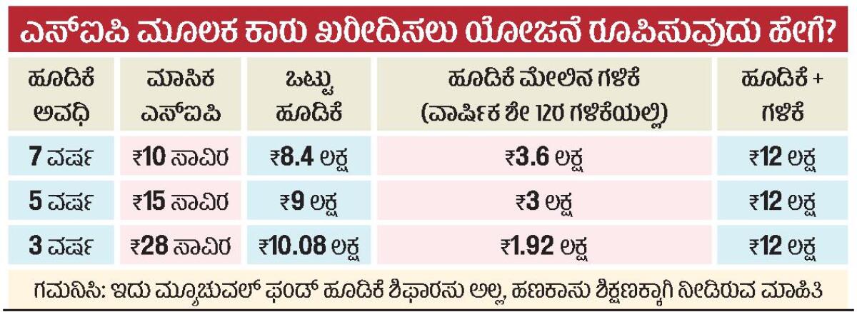 <p>ಸ್ವಂತ ಕಾರು ಖರೀದಿಸಬೇಕು ಎನ್ನುವುದು ಪ್ರತಿ ವ್ಯಕ್ತಿಯ ಕನಸು. ಆದರೆ ಅನೇಕರು ಸಾಲದ ಮೂಲಕ ನೆಚ್ಚಿನ ಕಾರು ಖರೀದಿಗೆ ಮುಂದಾಗುತ್ತಾರೆ. ಸಾಲ ಎಂದಾಕ್ಷಣ ಕೆಲವು ವರ್ಷ ಸಾಲದ ಇಎಂಐ (ಮಾಸಿಕ ಕಂತು) ಕಟ್ಟುವುದು, ಸಾವಿರಾರು ರೂಪಾಯಿ ಬಡ್ಡಿ ಪಾವತಿಸುವುದು ಇದ್ದಿದ್ದೇ. ಎಷ್ಟೋ ಸಲ, ಸಾಲದ ಭಾರಕ್ಕೆ ಕಾರು ಕೊಂಡ ನೆಮ್ಮದಿಯೇ ಇಲ್ಲವಾಗುತ್ತದೆ. ಹಾಗಾದರೆ ಸಾಲ ಮಾಡದೆ ಕಾರು ಕೊಳ್ಳಬಹುದಾ? ಹೌದು, ಸಾಲದ ಹೊರೆ ಇಲ್ಲದೆ ಮ್ಯೂಚುವಲ್ ಫಂಡ್ ಎಸ್ಐಪಿ ಹೂಡಿಕೆ ಮೂಲಕ ಕಾರು ಖರೀದಿಸಬಹುದು. ಇಲ್ಲಿ ಸಾಲದ ಭಾರವಿಲ್ಲ, ಇಎಂಐ ತಲೆಬಿಸಿಯಿಲ್ಲ, ಪಕ್ಕಾ ಹೂಡಿಕೆ ಯೋಜನೆ ಮಾಡಿದರೆ ಆಯಿತು. ನೆಚ್ಚಿನ ಕಾರು ನಿಮ್ಮದಾಗುತ್ತದೆ.</p>.<p><strong>₹10 ಲಕ್ಷ ಮೌಲ್ಯದ ಕಾರು ಸಾಲಕ್ಕೆ ಬಡ್ಡಿ ಹೊರೆ ಎಷ್ಟು?:</strong> ಕಾರಿಗಾಗಿ ಸಾಲ ತೆಗೆದುಕೊಂಡಾಗ ಏನಾಗುತ್ತದೆ ಎಂದು ಒಮ್ಮೆ ನೋಡೋಣ. ಉದಾಹರಣೆಗೆ, ₹12 ಲಕ್ಷ ಮೌಲ್ಯದ ಕಾರು ಖರೀದಿಸಲು ₹2 ಲಕ್ಷ ಡೌನ್ ಪೇಮೆಂಟ್ ಮಾಡಿದ್ದೀರಿ ಎಂದುಕೊಳ್ಳೋಣ. ಇನ್ನುಳಿದ ₹10 ಲಕ್ಷವನ್ನು 5 ವರ್ಷಕ್ಕೆ ಶೇ 9ರ ಬಡ್ಡಿ ದರದಲ್ಲಿ ಸಾಲವಾಗಿ ಪಡೆದುಕೊಳ್ಳುತ್ತೀರಿ ಎಂದು ಭಾವಿಸೋಣ. ಈ ಲೆಕ್ಕಾಚಾರದಂತೆ ಪ್ರತಿ ತಿಂಗಳು ಸುಮಾರು ₹20,760 ಇಎಂಐ ಪಾವತಿಸಬೇಕಾಗುತ್ತದೆ. 5 ವರ್ಷದಲ್ಲಿ ₹10 ಲಕ್ಷ ಅಸಲಿನ ಮೊತ್ತದ ಜೊತೆಗೆ ₹2.45 ಲಕ್ಷ ಬಡ್ಡಿ ಸೇರಿ ಒಟ್ಟು ₹12.45 ಲಕ್ಷ ಪಾವತಿಸಬೇಕಾಗುತ್ತದೆ. ಕಾರು ಮೌಲ್ಯ ವೃದ್ಧಿಯಾಗುವ ಆಸ್ತಿಯಲ್ಲದ ಕಾರಣ ಕಾರಿಗಾಗಿ ಹೆಚ್ಚು ಸಾಲ ಮಾಡಿ ಬಡ್ಡಿ ಕಟ್ಟುವುದು ಸರಿಯಾದ ಹಣಕಾಸು ತೀರ್ಮಾನವಲ್ಲ.</p>.<p><strong>ಎಸ್ಐಪಿ ಮೂಲಕ ಕಾರು ಖರೀದಿ ಹೇಗೆ?:</strong> ಈಗ ಕಾರು ಖರೀದಿಸಲು ₹12 ಲಕ್ಷ ಬೇಕಾಗಿದ್ದು ಮ್ಯೂಚುವಲ್ ಫಂಡ್ ಎಸ್ಐಪಿ ಹೂಡಿಕೆ ಮೂಲಕ ಅದನ್ನು ಪೇರಿಸುವ ಗುರಿ ಹೊಂದಿದ್ದೀರಿ ಎಂದುಕೊಳ್ಳೋಣ. ಮ್ಯೂಚುವಲ್ ಫಂಡ್ನಲ್ಲಿ ವಾರ್ಷಿಕ ಸರಾಸರಿ ಶೇ 12ರಷ್ಟು ಗಳಿಕೆ ಸಿಗುತ್ತದೆ ಎಂದು ಭಾವಿಸೋಣ. 7 ವರ್ಷಗಳಲ್ಲಿ ಗುರಿ ಮುಟ್ಟಲು ಎಷ್ಟು ಮೊತ್ತ ಹೂಡಬೇಕು, 5 ವರ್ಷಗಳಲ್ಲೇ ಕಾರು ಖರೀದಿಸಬೇಕಾದರೆ ಅದಕ್ಕೆ ಹೇಗೆ ಯೋಜನೆ ಮಾಡಬೇಕು, ಇಲ್ಲ ಮೂರೇ ವರ್ಷಗಳಲ್ಲಿ ಕಾರು ಕೊಳ್ಳಬೇಕಾದರೆ ಅದಕ್ಕೆ ನಿಮ್ಮ ಎಸ್ಐಪಿ ಹೂಡಿಕೆ ಯೋಜನೆ ಹೇಗಿರಬೇಕು ಎಂಬುದು ತಿಳಿಯಬೇಕಿದೆ.</p>.<p>7 ವರ್ಷಗಳ ನಂತರ ₹12 ಲಕ್ಷ ಮೌಲ್ಯದ ಕಾರು ಖರೀದಿಸಬೇಕಾದರೆ ಮಾಸಿಕ ₹10 ಸಾವಿರ ಎಸ್ಐಪಿ ಮಾಡಬೇಕಾಗುತ್ತದೆ. 7 ವರ್ಷಗಳಲ್ಲಿ ಒಟ್ಟು ಹೂಡಿಕೆ ಮೊತ್ತ ₹8.4 ಲಕ್ಷ ಆಗಿರುತ್ತದೆ. ನಿಮ್ಮ ಹೂಡಿಕೆ ಮೇಲೆ ವಾರ್ಷಿಕ ಸರಾಸರಿ ಶೇ 12ರ ಗಳಿಕೆ ಸಿಕ್ಕರೆ ₹3.6 ಲಕ್ಷ ಗಳಿಕೆ ನಿಮಗೆ ಲಭಿಸುತ್ತದೆ. ಹೂಡಿಕೆ ಮೊತ್ತ ಮತ್ತು ಗಳಿಕೆ ಮೊತ್ತ ಸೇರಿದರೆ ₹12 ಲಕ್ಷ ನಿಮ್ಮ ಬಳಿ ಇರುತ್ತದೆ. ಮುಂದಿನ 5 ವರ್ಷದಲ್ಲಿ ಕಾರು ಖರೀದಿಸಬೇಕು ಎಂಬ ಯೋಜನೆ ನಿಮ್ಮದಾಗಿದ್ದರೆ ₹12 ಲಕ್ಷ ಪೇರಿಸಲು ಪ್ರತಿ ತಿಂಗಳು ₹15 ಸಾವಿರ ಎಸ್ಐಪಿ ಮಾಡಬೇಕಾಗುತ್ತದೆ. 5 ವರ್ಷಗಳಲ್ಲಿ ಒಟ್ಟು ₹9 ಲಕ್ಷ ಹೂಡಿಕೆಯಾಗಿರುತ್ತದೆ. ಶೇ 12ರ ಲೆಕ್ಕಾಚಾರದಲ್ಲಿ ₹3 ಲಕ್ಷ ಗಳಿಕೆ ಲಭಿಸುತ್ತದೆ. ಎರಡನ್ನೂ ಒಟ್ಟುಗೂಡಿಸಿದಾಗ ನಿಮ್ಮ ಬಳಿ ₹12 ಲಕ್ಷ ಇರುತ್ತದೆ. ಮೂರೇ ವರ್ಷದಲ್ಲಿ ಮ್ಯೂಚುವಲ್ ಫಂಡ್ ಹೂಡಿಕೆ ಮಾಡಿ ₹12 ಲಕ್ಷ ಮೌಲ್ಯದ ಕಾರು ಖರೀದಿಸುವ ಯೋಜನೆ ಇದೆ ಎಂದಾದಲ್ಲಿ ಮಾಸಿಕ ₹28 ಸಾವಿರ ಹೂಡಿಕೆ ಮಾಡಬೇಕಾಗುತ್ತದೆ. ಮಾಸಿಕ ₹28 ಸಾವಿರ ಎಸ್ಐಪಿ ಮಾಡಿದಾಗ 3 ವರ್ಷಗಳಲ್ಲಿ ಒಟ್ಟು ₹10.08 ಲಕ್ಷ ಹೂಡಿಕೆಯಾಗಿರುತ್ತದೆ. ₹1.92 ಲಕ್ಷ ಗಳಿಕೆ ಸೇ